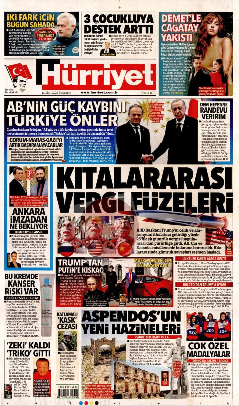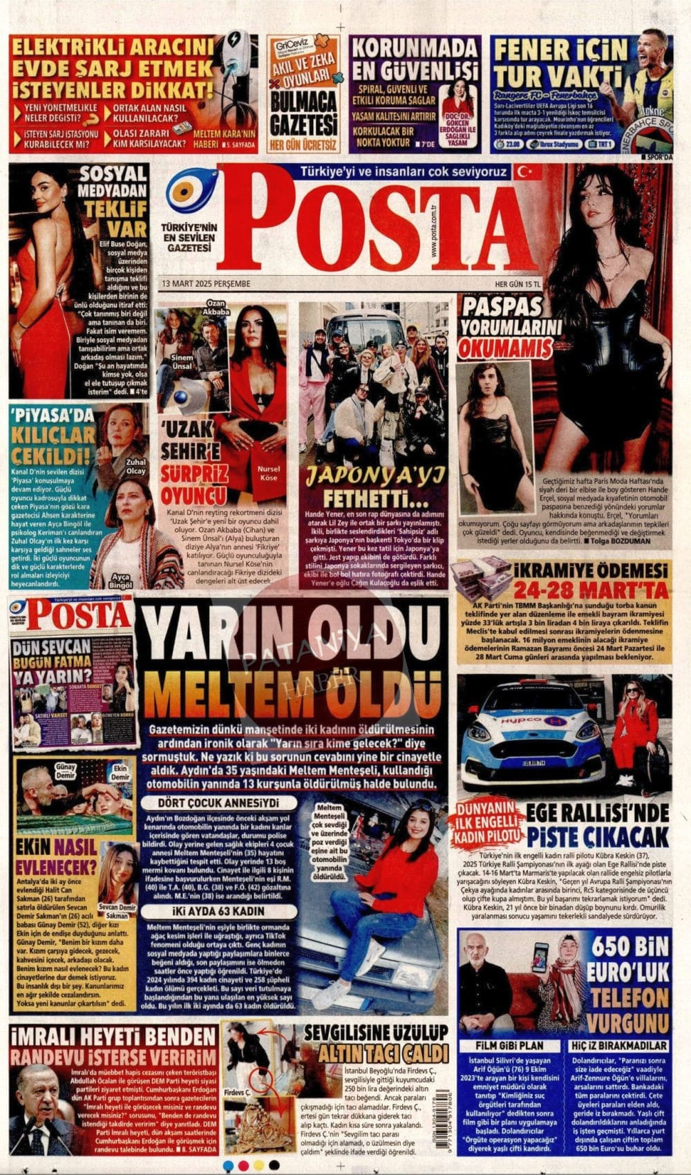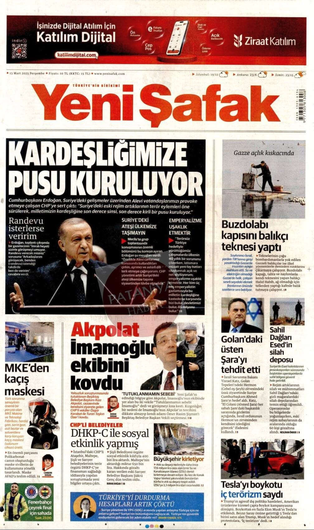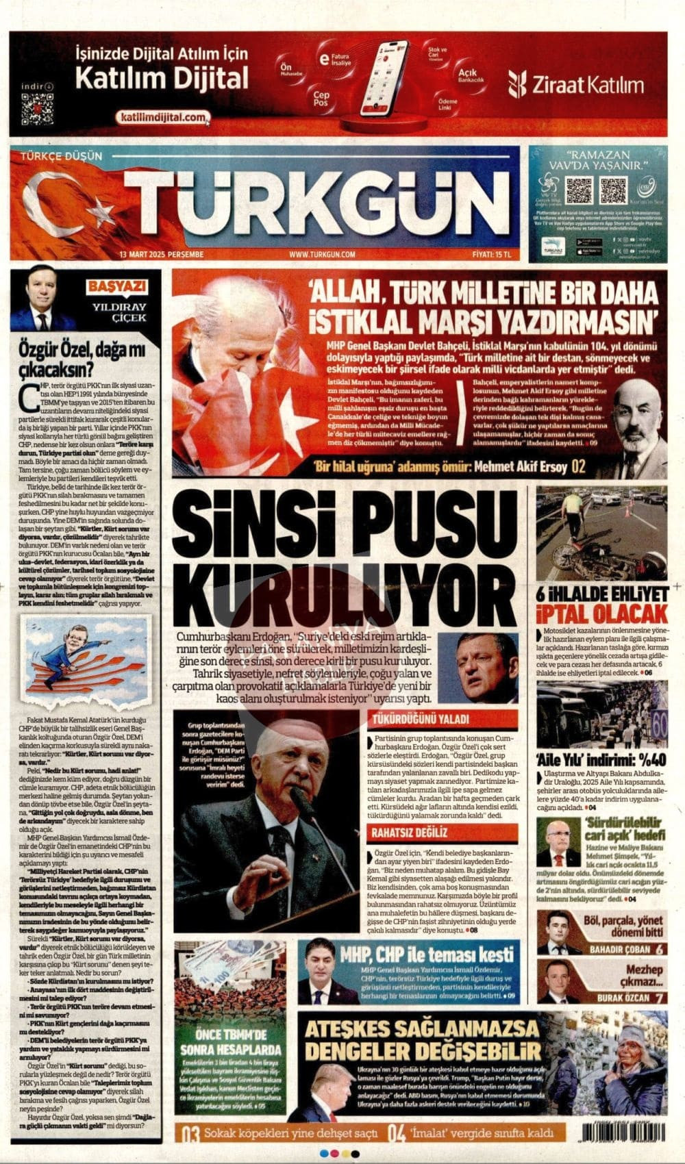 13 Mart 2025 Gazete Manşetleri