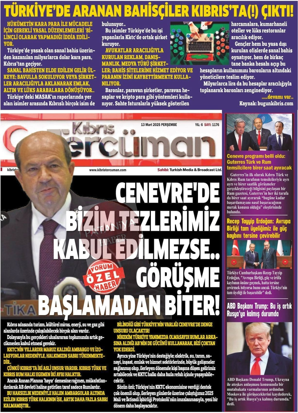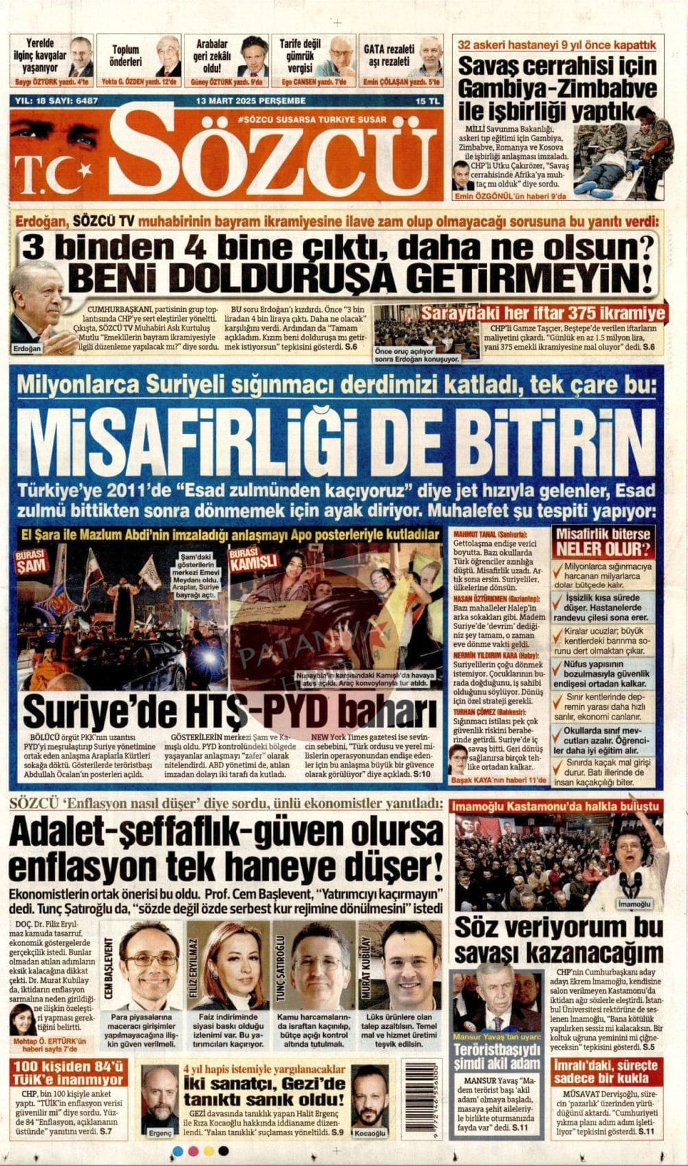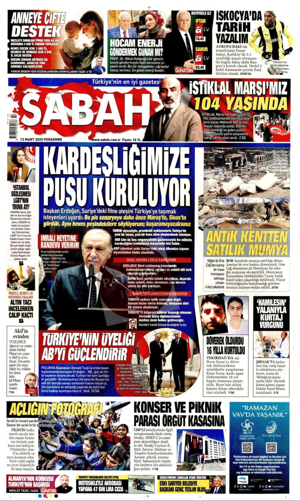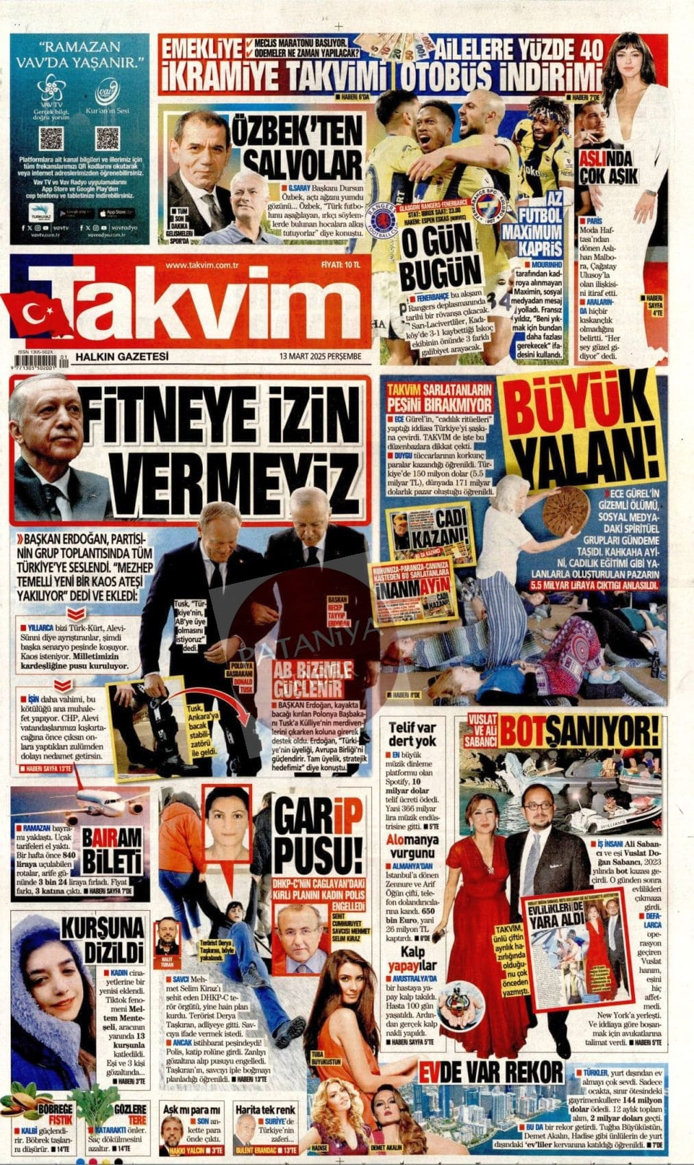 13 Mart 2025 Gazete Manşetleri