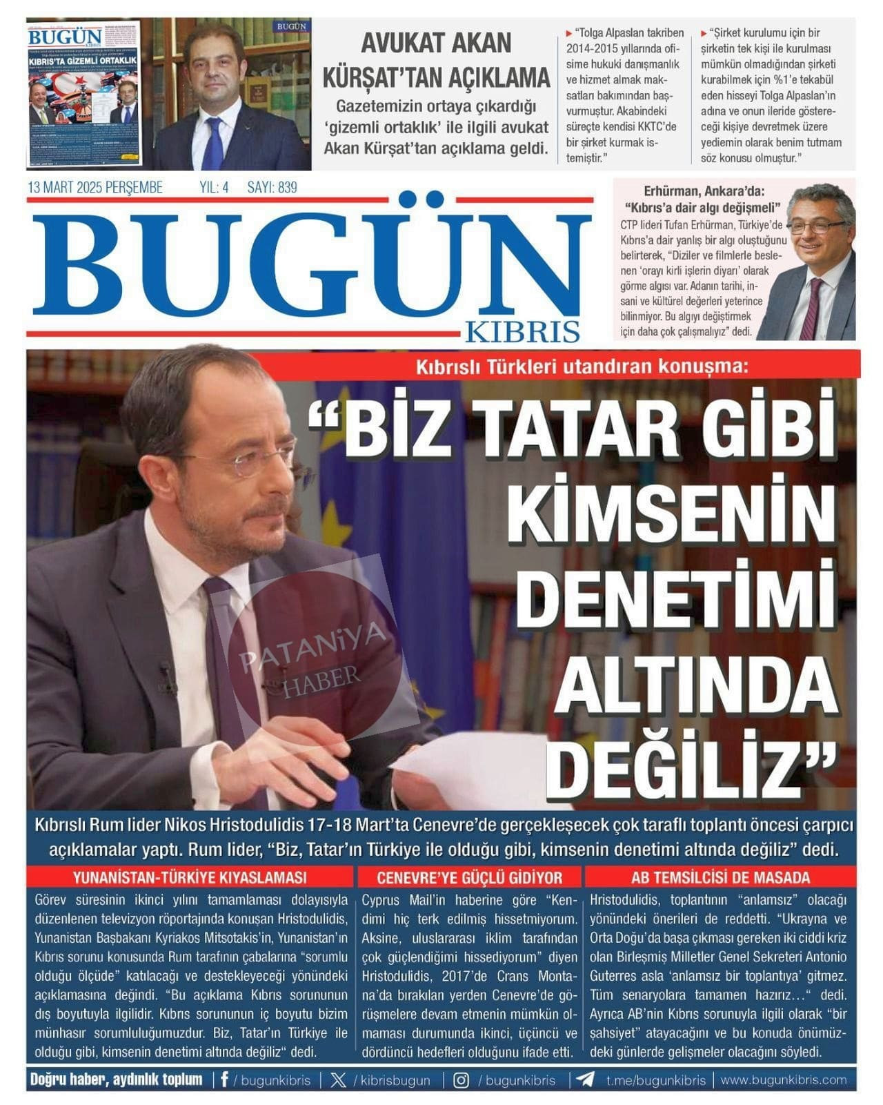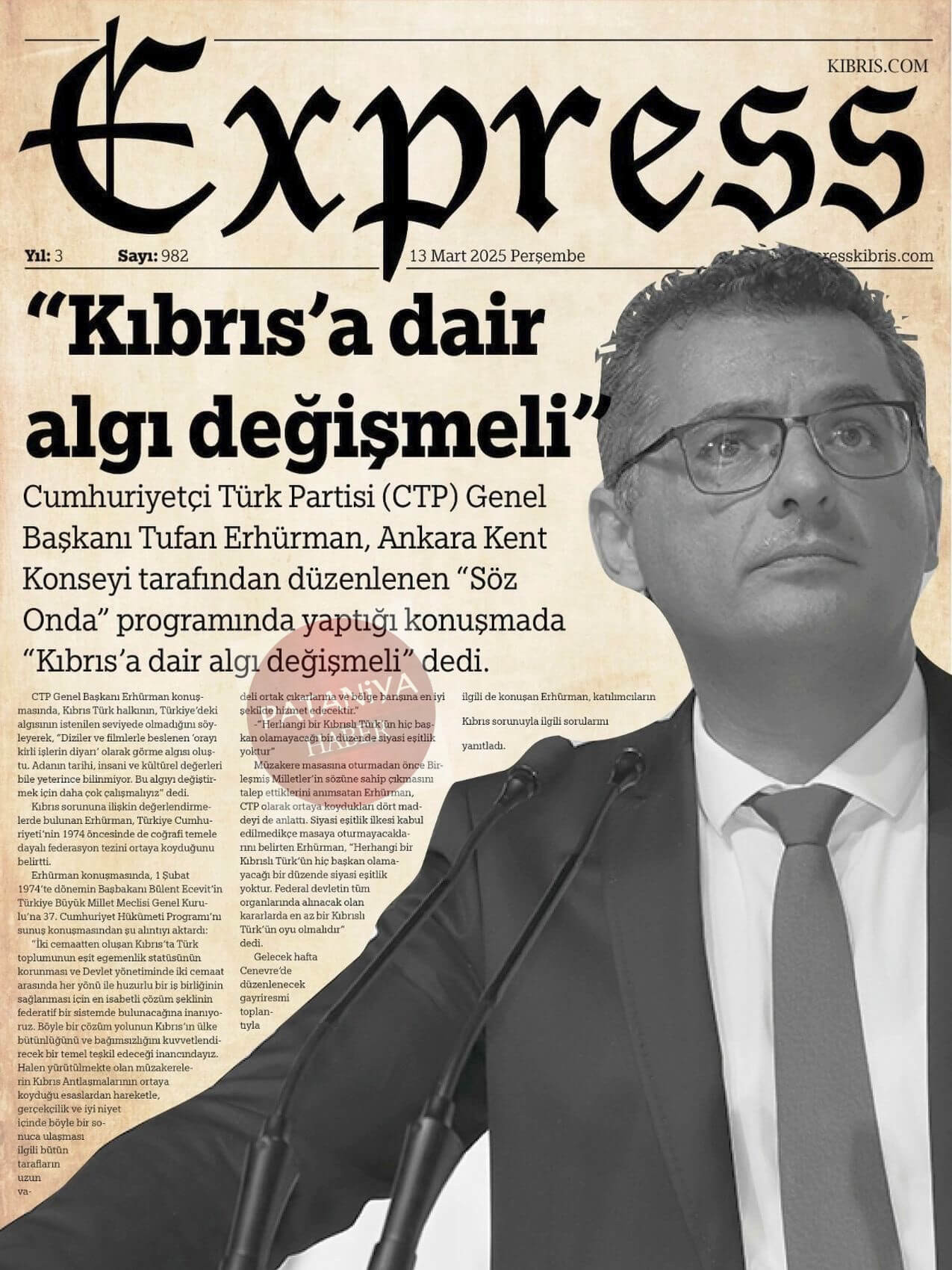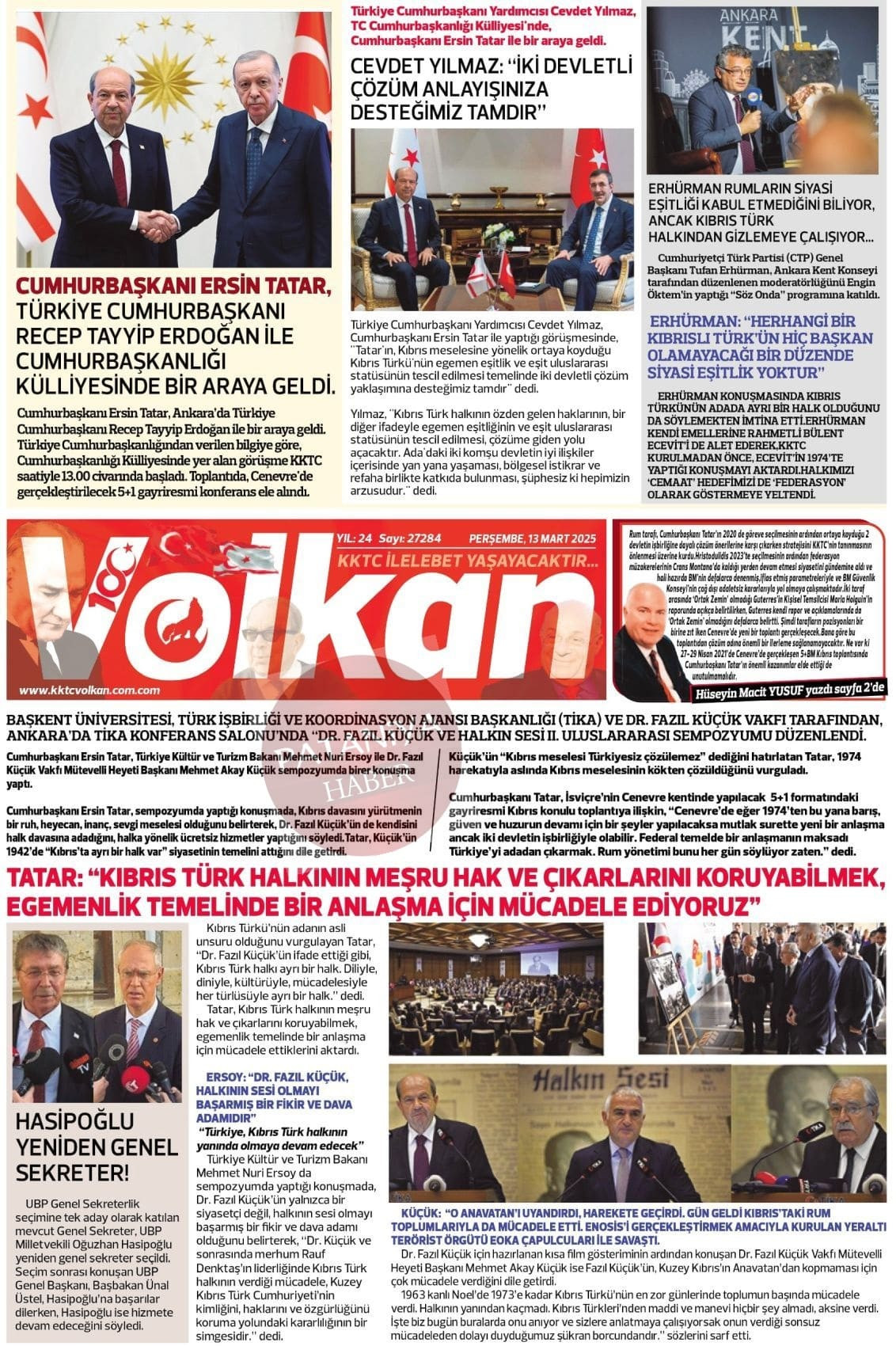 Cumhurbaşkanı Erhürman : Kıbrıs Türk Halkı bu adadaki iki eşit kurucu ortaktan biridir