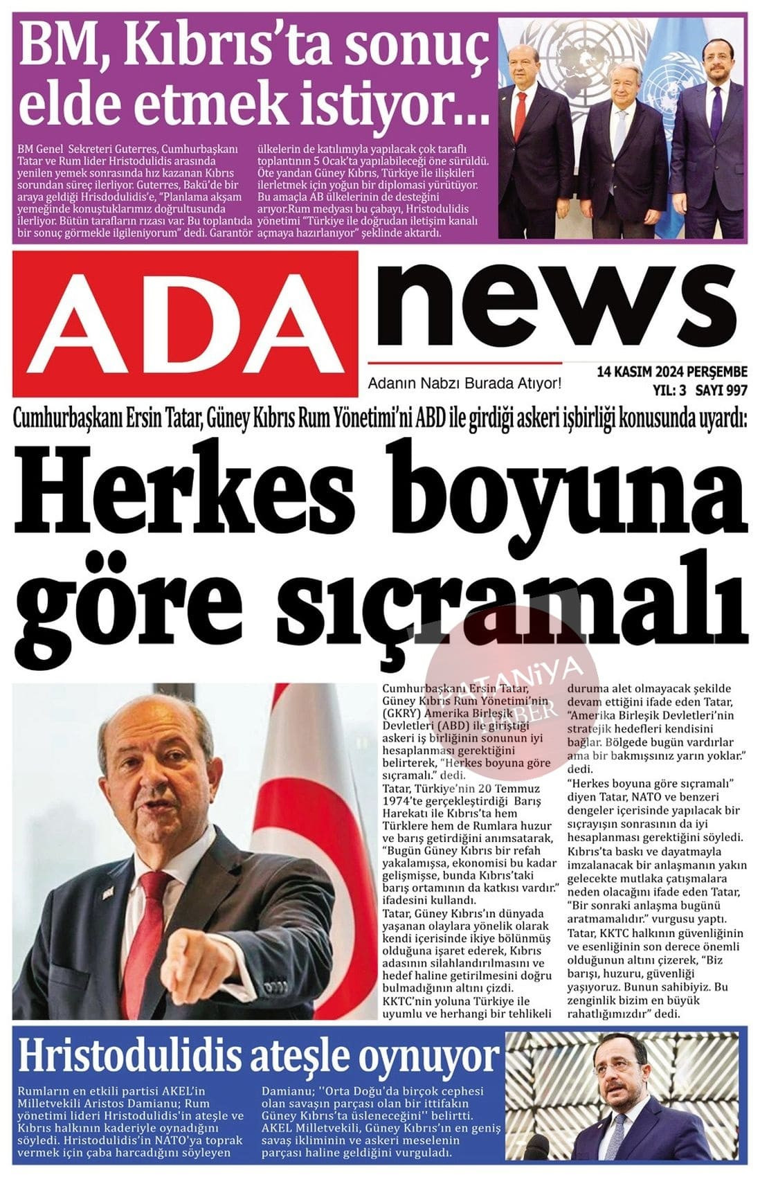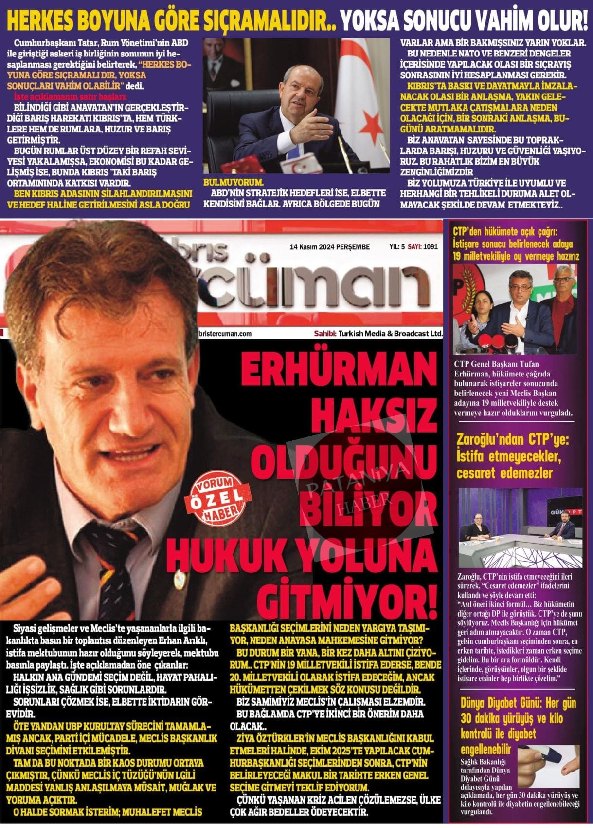 Cumhurbaşkanı Erhürman : Kıbrıs Türk Halkı bu adadaki iki eşit kurucu ortaktan biridir