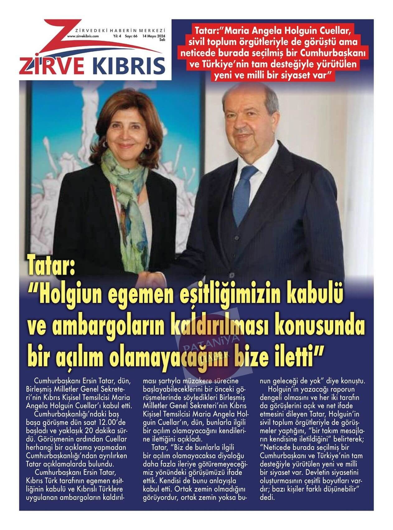Cumhurbaşkanı Erhürman : Kıbrıs Türk Halkı bu adadaki iki eşit kurucu ortaktan biridir