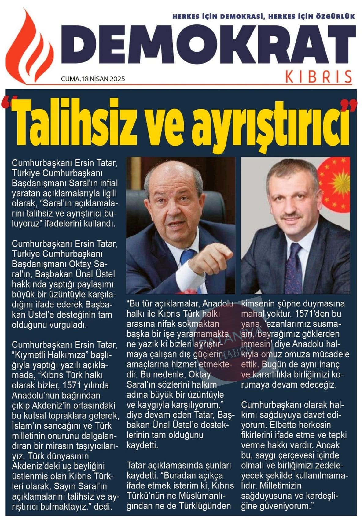 “Türkiye Cumhuriyeti ile iş birliği içinde Kıbrıs Türk halkının hak ve hukukunu...