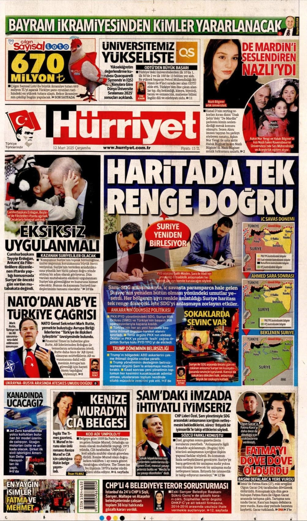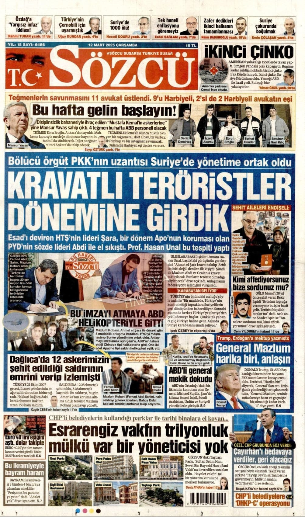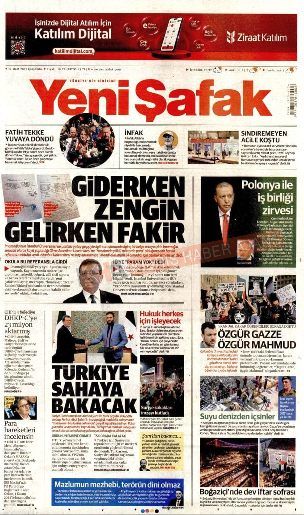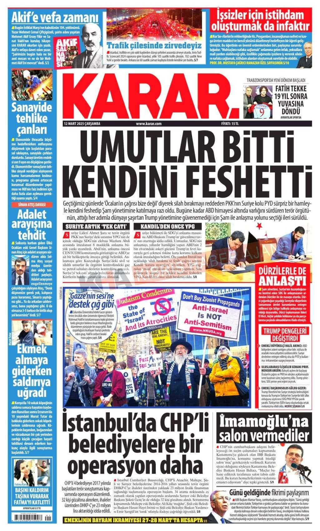 12 Mart 2025 Gazete Manşetleri