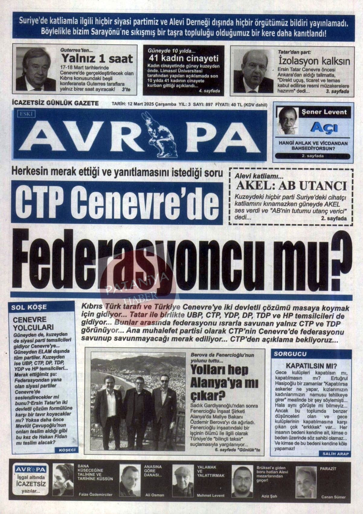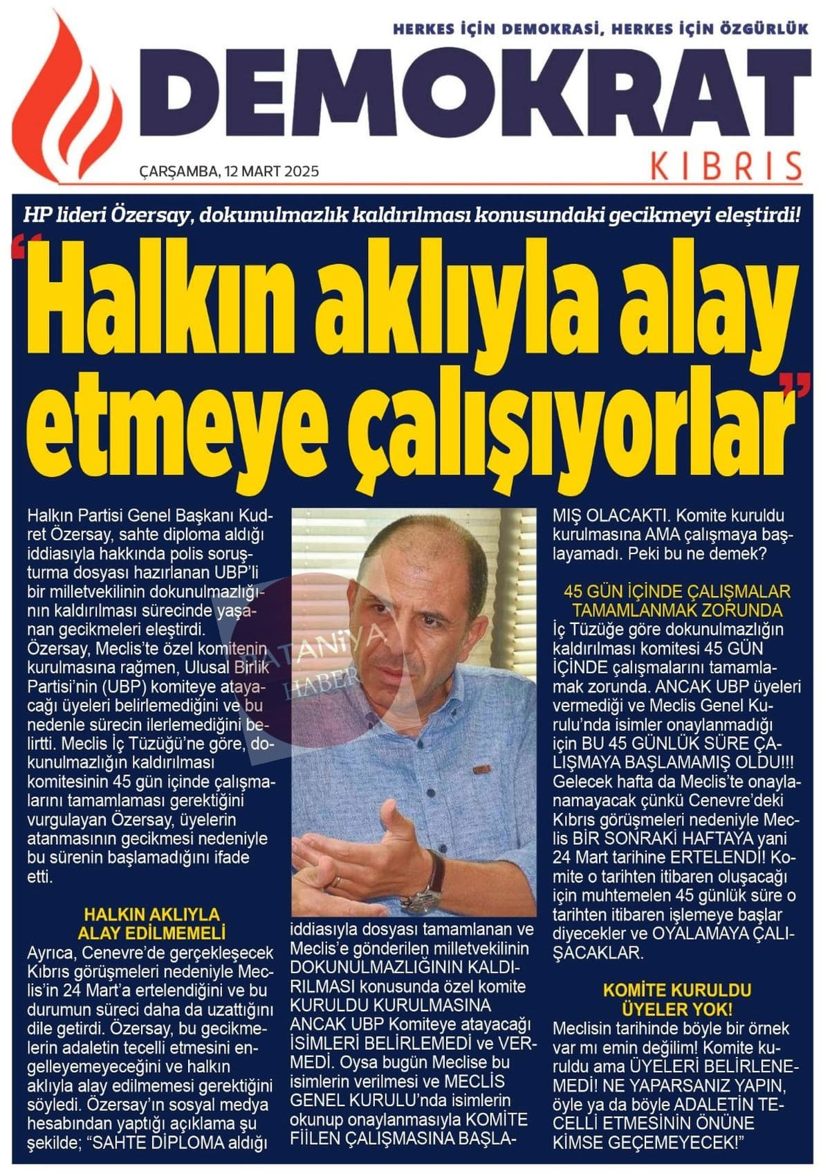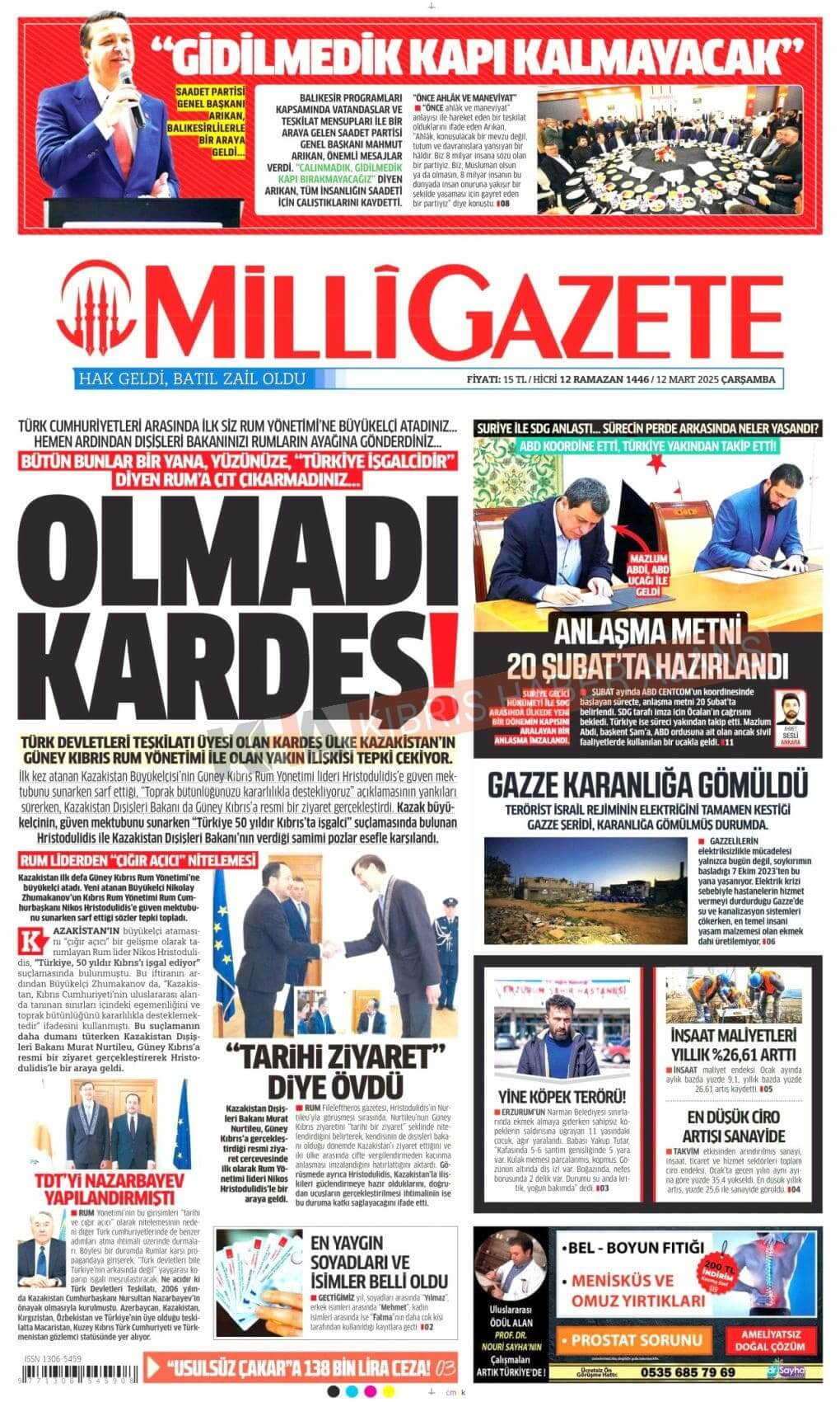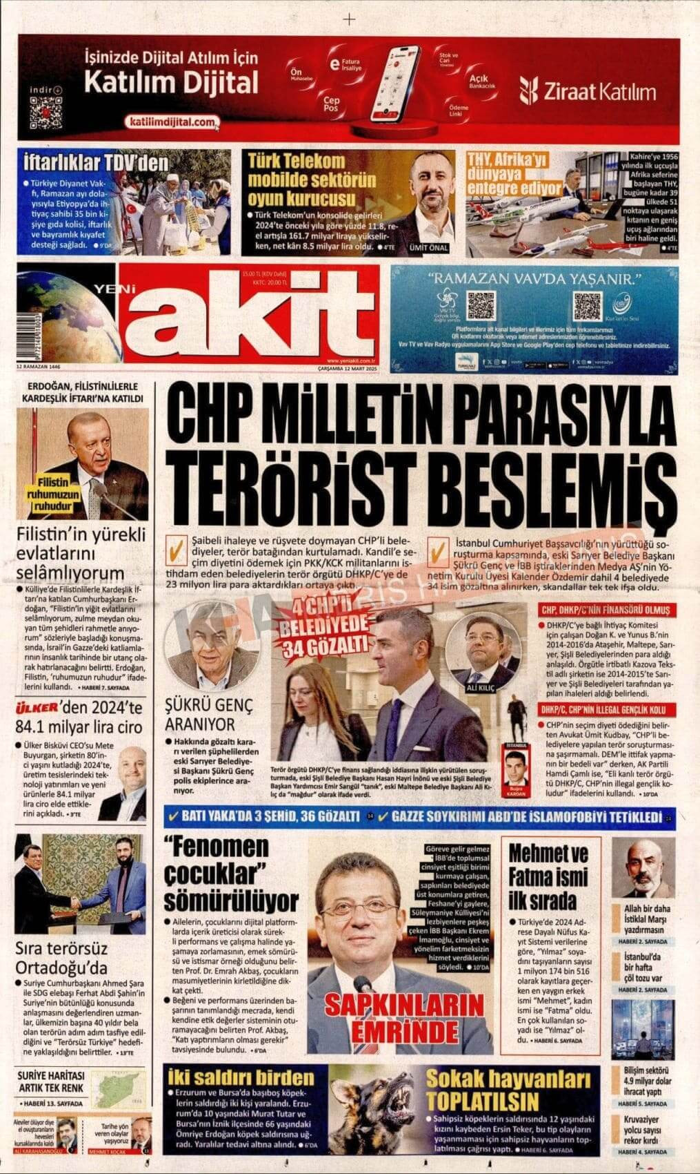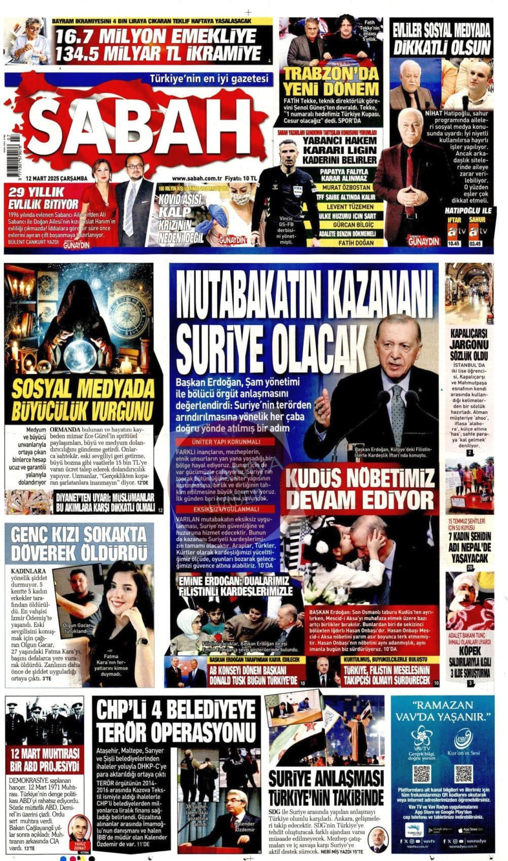 12 Mart 2025 Gazete Manşetleri