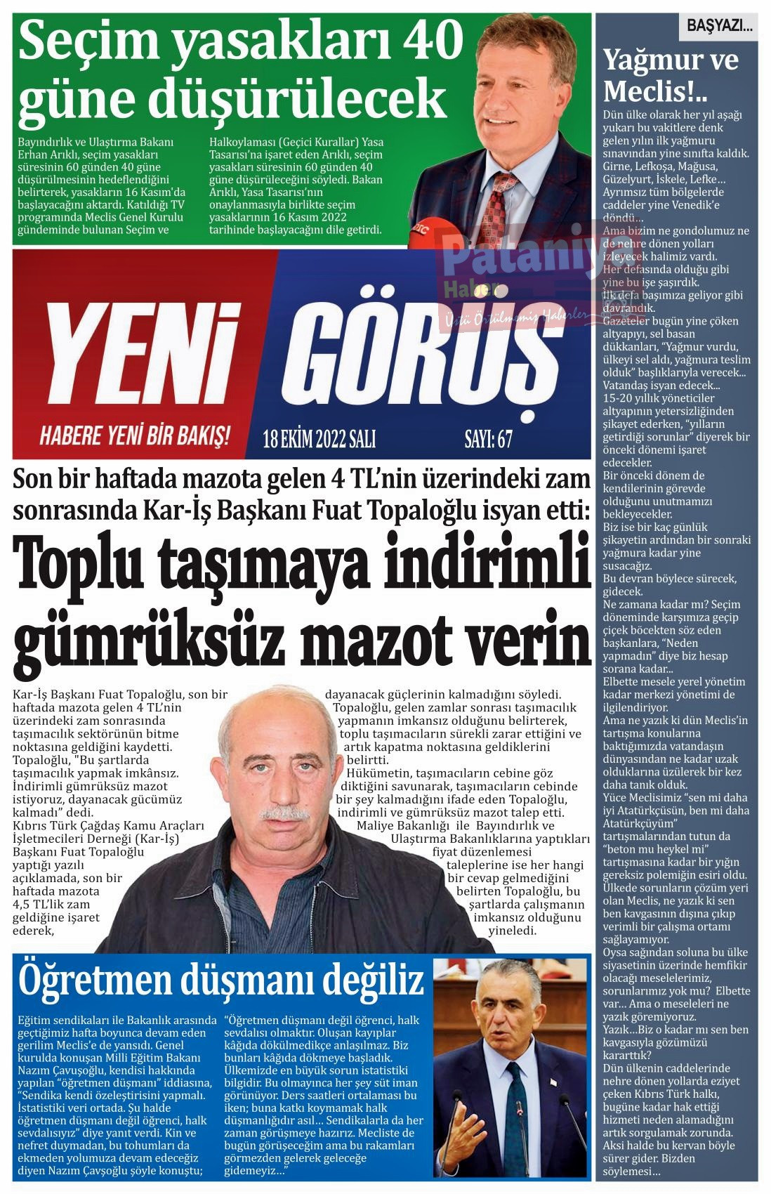Gazete Manşetlerinde Bugün