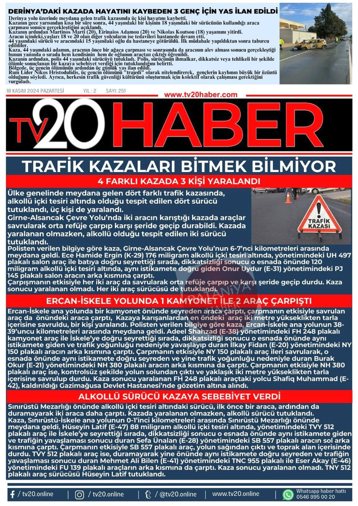 Değirmenlik-Girne ana yolunda ve Lefkoşa’da trafik kazaları; Bir kişi yaralandı