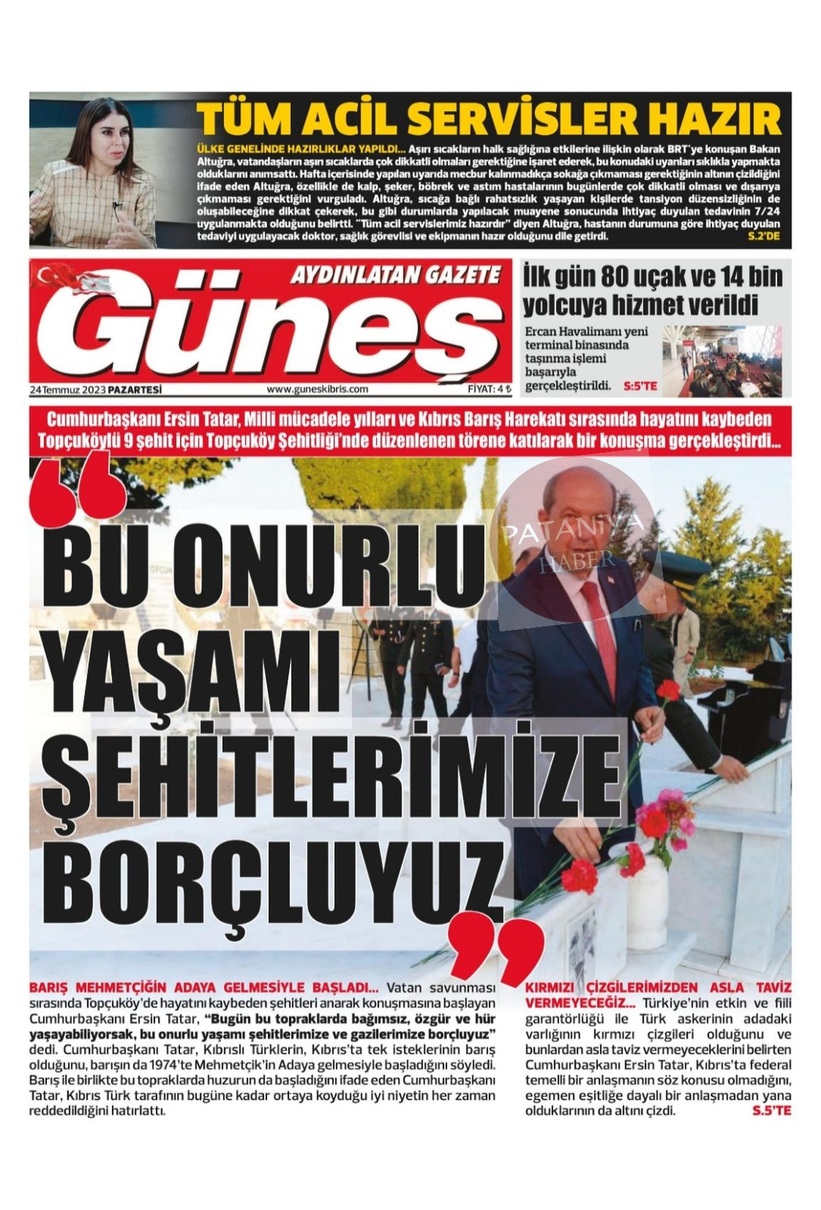 Cumhurbaşkanı Tatar, Barış Harekatı’nın 50. yılı etkinliklerine katılmak için İs...