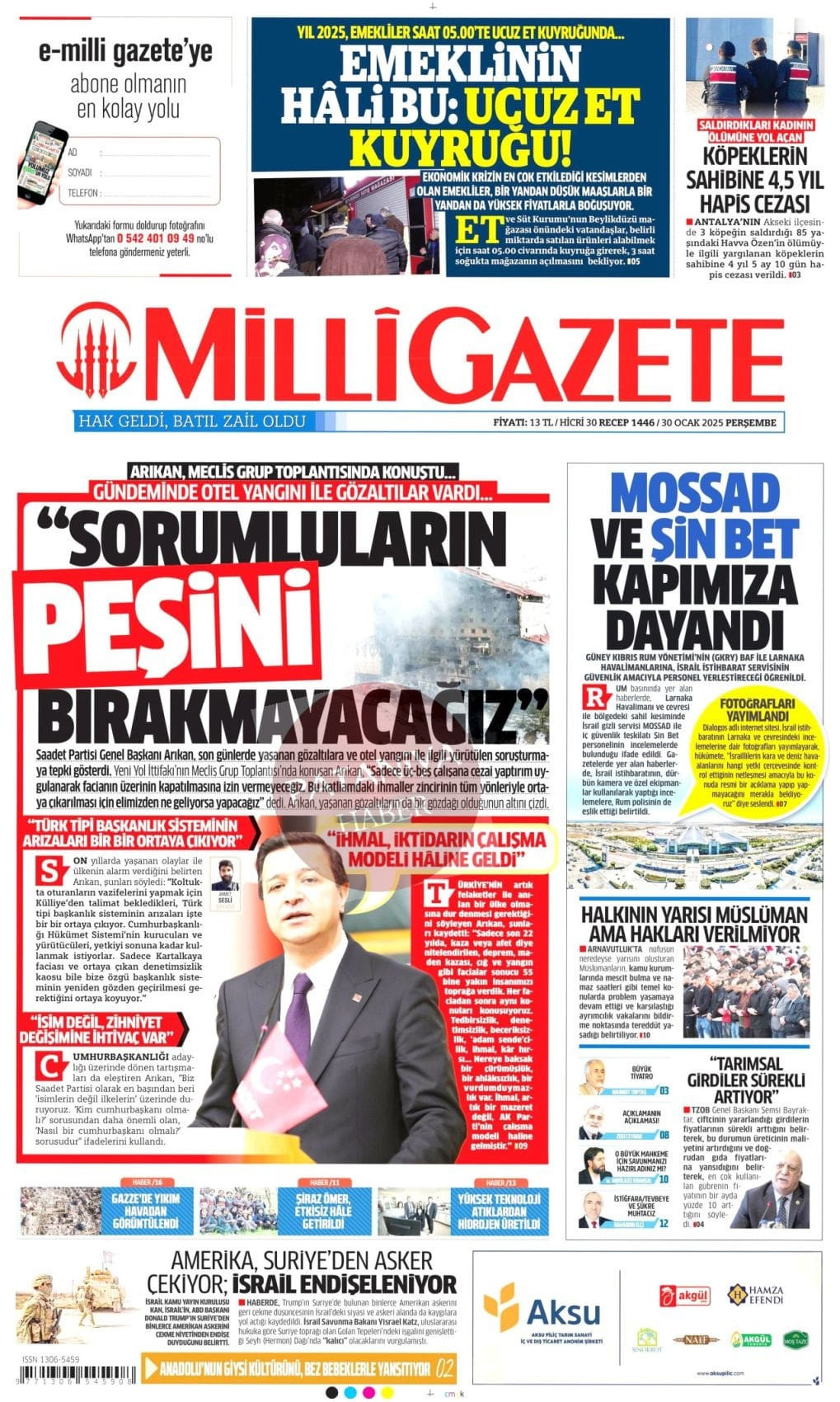 30 Ocak 2025 Gazete Manşetleri